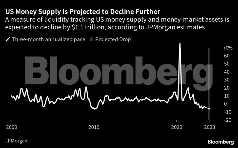 Οι πωλήσεις, που θα ξεκινήσουν τη Δευτέρα, αναμένεται να προκαλέσουν προβλήματα για κάθε κατηγορία περιουσιακών στοιχείων, καθώς θα διεκδικήσουν μια ήδη συρρικνωμένη προσφορά χρήματος: Η JPMorgan εκτιμά ότι ένα ευρύ μέτρο ρευστότητας θα μειωθεί κατά 1,1 τρισ. δολάρια από περίπου 25 τρισεκατομμύρια δολάρια στις αρχές του 2023.