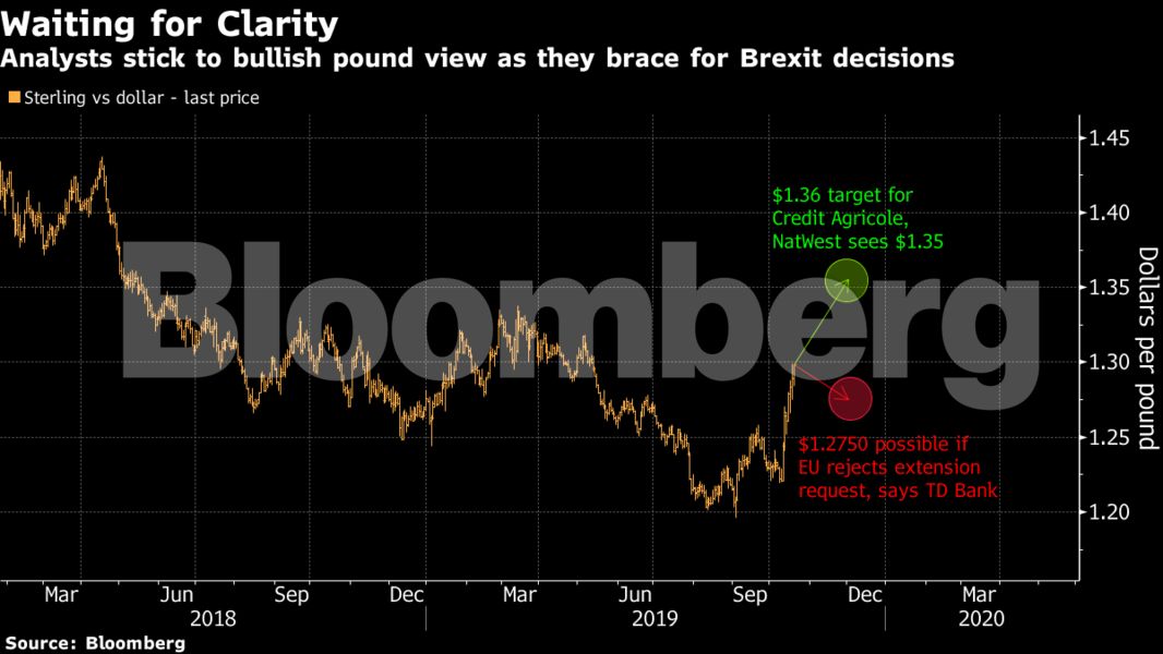 Οι αναλυτές παραμένουν στην προοπτική της ανόδου, ακόμα και αφού η βρετανική ετυμηγορία για τη νέα συμφωνία διαζυγίου του Τζόνσον, αναβλήθηκε. Αντ’ αυτού, οι βουλευτές υποστήριξαν μια τροπολογία που πρότεινε ο πρώην υπουργός των Συντηρητικών Όλιβερ Λέτουιν, ο οποίος απαιτεί από τη Βουλή των Κοινοτήτων να περάσει όλες τις απαραίτητες νομοθετικές παρεμβάσεις για το Brexit προτού προβεί σε επίσημη ψηφοφορία για τη Συμφωνία Απόσυρσης. Αυτό σημαίνει ότι ο πρωθυπουργός δεσμεύεται να ζητήσει από την ΕΕ μια ακόμα παράταση για το exit, προκειμένου να συνεχιστούν οι διαπραγματεύσεις.