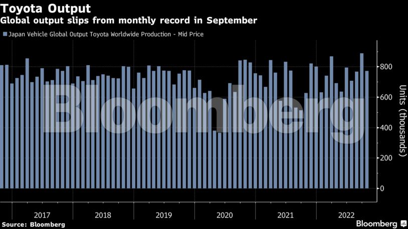 Η Toyota Motor παρήγαγε τον Οκτώβριο 771.382 οχήματα, έναντι ιστορικού υψηλού 887.733 τον Σεπτέμβριο, με την ιαπωνική αυτοκινητοβιομηχανία να προειδοποιεί για αβέβαιες προοπτικές λόγω του Covid, αλλά και της σπάνης ημιαγωγών. Η παραγωγή παρουσιάστηκε, ακόμη κι έτσι, αυξημένη κατά 23% σε ετήσια βάση (δηλαδή σε σχέση με τον Οκτώβριο του 2021), όταν οι αλυσίδες εφοδιασμού είχαν επηρεαστεί από την εξάπλωση του Covid στη νοτιοανατολική Ασία. Σύμφωνα με την Toyota, σε εξέλιξη βρίσκεται μια ορισμένη αναπροσαρμογή της παραγωγής στην Κίνα, λόγω της πανδημίας και των συναφών περιορισμών.