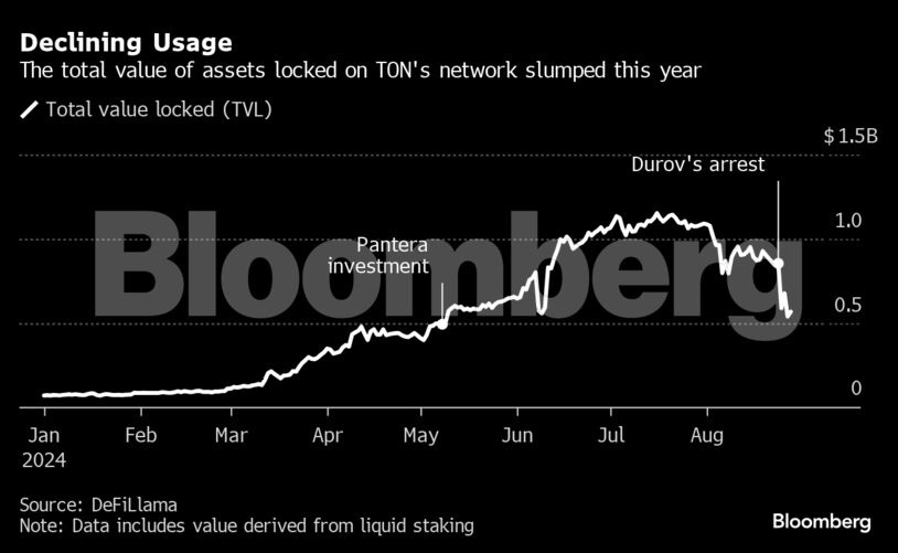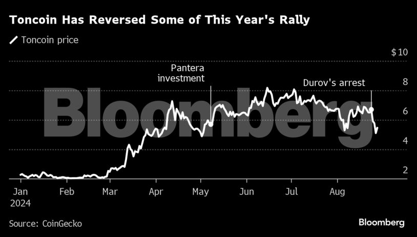 Το Toncoin σημείωσε πτώση περίπου 20% μετά τη σύλληψη του Ντούροφ στις 24 Αυγούστου, πριν περιορίσει κάποιες από αυτές τις απώλειες. Η συνολική αξία του TON έχει πέσει στα 573 εκατομμύρια δολάρια, σύμφωνα με τον πάροχο δεδομένων DefiLlama.