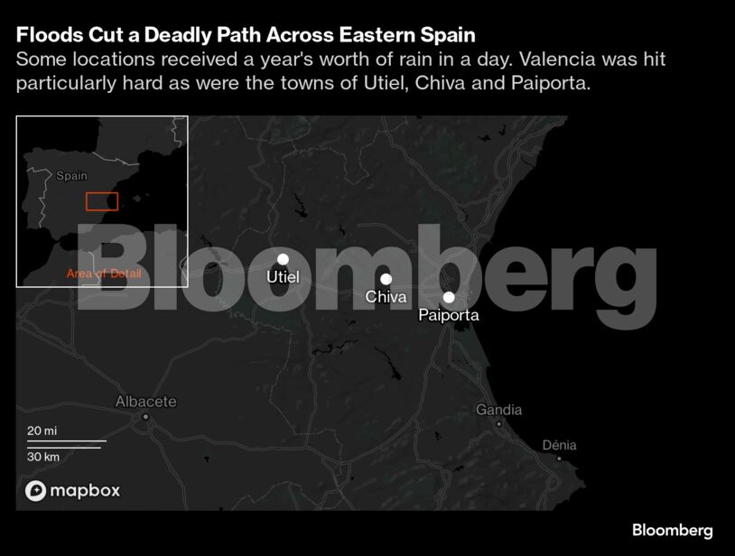 Οι πλημμύρες που σκότωσαν περισσότερους από 150 ανθρώπους στην ανατολική Ισπανία αυτή την εβδομάδα προκλήθηκαν από μια καταιγίδα που έριξε βροχοπτώσεις ενός έτους σε λιγότερο από 24 ώρες.