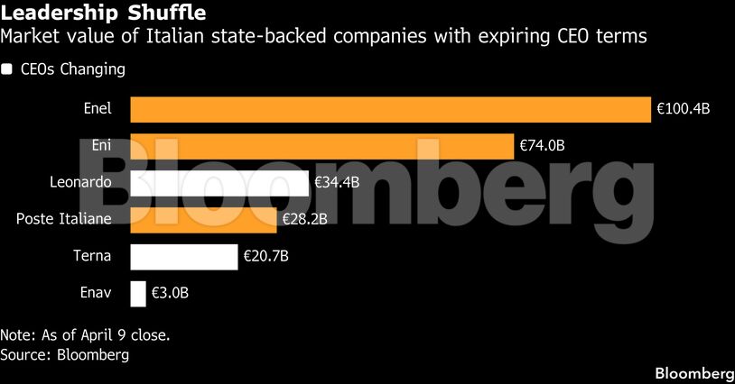 Η πρωθυπουργός της Ιταλίας Τζόρτζια Μελόνι προχώρησε στην απομάκρυνση του διευθύνοντος συμβούλου της Leonardo SpA, της κρατικά υποστηριζόμενης εταιρείας αεροδιαστημικής και άμυνας, διατηρώντας ωστόσο στις θέσεις τους τους επικεφαλής των ενεργειακών κολοσσών Eni SpA και Enel SpA.