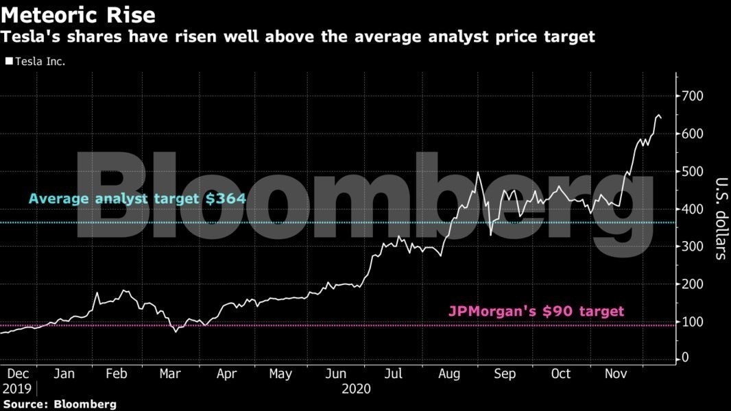 Ο αναλυτής υπογραμμίζει ότι τα τελευταία δύο χρόνια οι μετοχές της Tesla έχουν σημειώσει αύξηση πάνω από 800%. Επιπλέον οι αναλυτές έχουν αυξήσει την τιμή-στόχο της μετοχής κατά περίπου 450%, μειώνοντας ταυτοχρόνως τις εκτιμήσεις τους για τα κέρδη της εταιρείας στα έτη από το 2020 έως το 2024. Τα δεδομένα αυτά «υποδηλώνουν έντονα ότι κάτι άλλο (κερδοσκοπικός ενθουσιασμός ίσως;) οδηγεί τις μετοχές ψηλότερα», πρόσθεσε ο Μπρικμαν.
