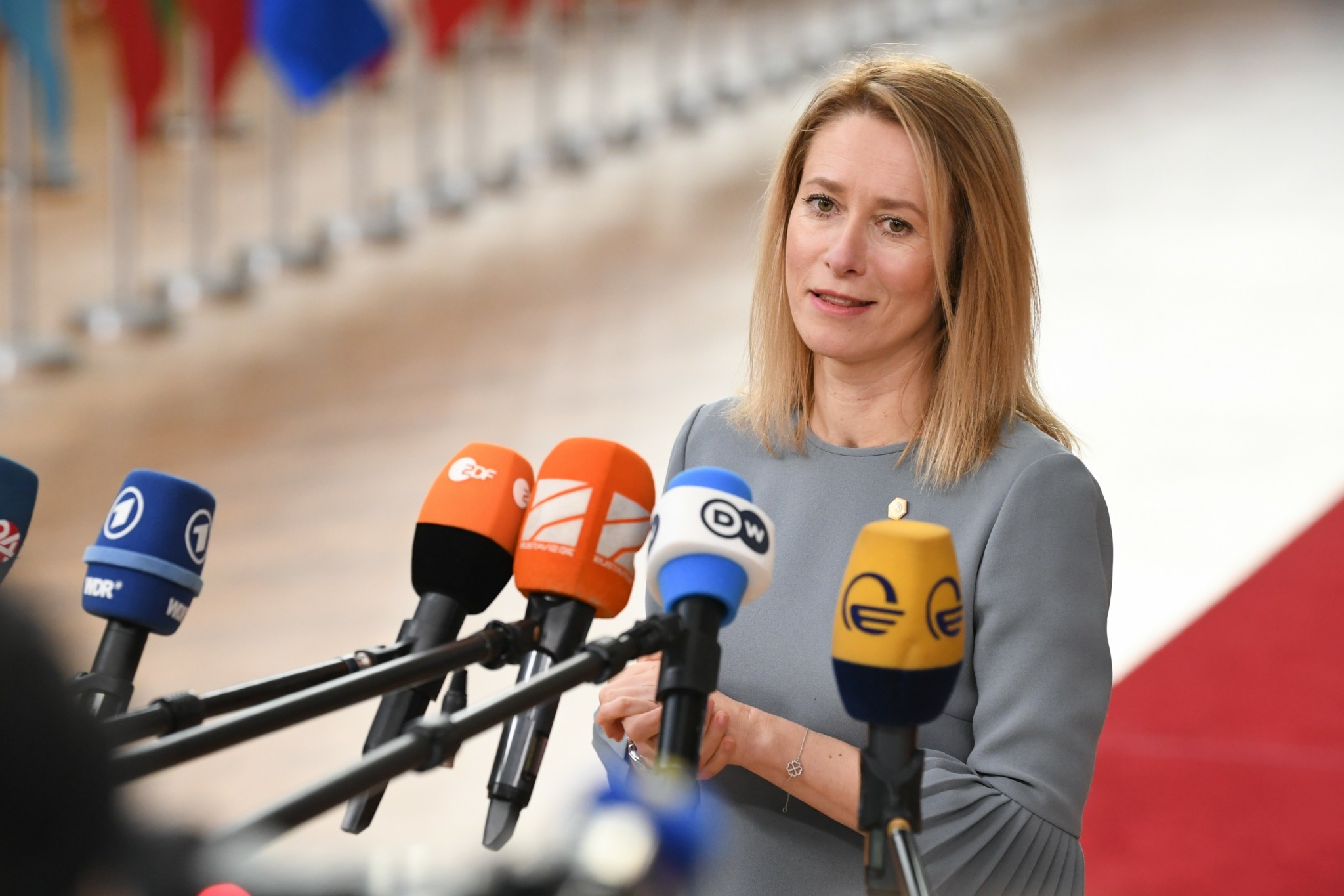 Η Κάλλας προσπάθησε να συγκεντρώσει υποστήριξη για την πρωτοβουλία της να παραδώσει η ΕΕ φέτος 2 εκατομμύρια βλήματα πυροβολικού στην Ουκρανία. Μέχρι στιγμής υπάρχουν δεσμεύσεις για «πάνω από το 50% αυτού που χρειάζεται», δήλωσε η ίδια. Η υποστήριξη απαιτείται για να ενισχυθεί η θέση του Κιέβου στις ειρηνευτικές συνομιλίες, πρόσθεσε η Κάλλας.