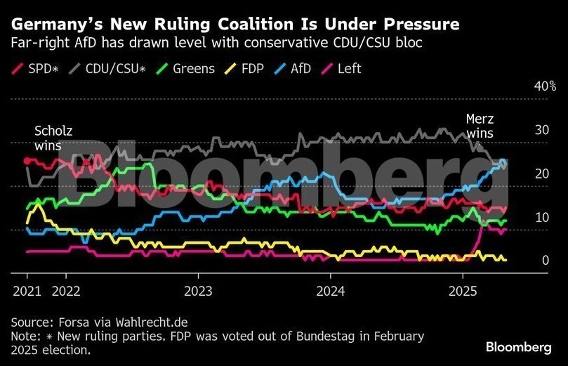 Η επισφαλής πλειοψηφία του Μερτς – ο οποίος υπήρξε αρκετά χρόνια στέλεχος της BlackRock – οφείλεται εν μέρει στην άνοδο της ακροδεξιάς AfD, που επωφελήθηκε εκλογικά από τις αναταράξεις. Η χαμηλή δημοτικότητα του ηγέτη των Χριστιανοδημοκρατών και το διχαστικό του παρελθόν – συμπεριλαμβανομένων δηλώσεων περί «τουρισμού πρόνοιας» για Ουκρανούς πρόσφυγες – τον καθιστούν ευάλωτο στις εσωτερικές διαφωνίες.