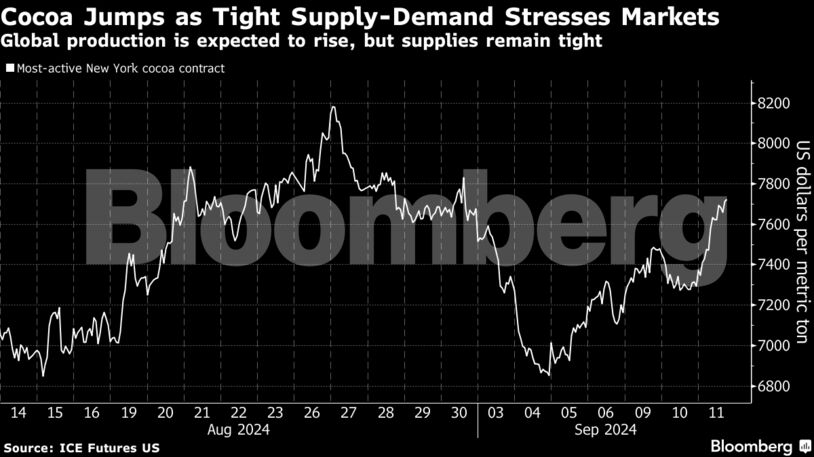 Τα συμβόλαια μελλοντικής εκπλήρωσης για το κακάο σημείωσαν άνοδο έως και 6,6% στη Νέα Υόρκη, καθώς οι προοπτικές για μεγαλύτερες συγκομιδές αντισταθμίστηκαν από τις ανησυχίες για τα σφιχτά παγκόσμια αποθέματα.