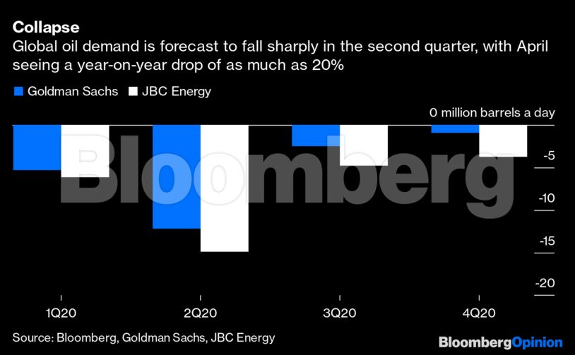 Η ελεύθερη άντληση που ενεργοποιήθηκε από τη Σαουδική Αραβία και τη Ρωσία είναι σημαντική για μορφή της πετρελαϊκής βιομηχανίας μακροπρόθεσμα, αλλά, όπως επισήμανε ο Χαβιέ Μπλάς, προσφέρει μια εικόνα για το χάος που προκάλεσε το lockdown των οικονομιών παγκοσμίως ως απάντηση στην πανδημία του κορωνοϊού. Οι προβλέψεις για μια καταστροφική πτώση της ζήτησης πετρελαίου αφθονούν, με την εκτίμηση για μια επιβλητική μείωση κατά 20% σε ετήσια βάση της παγκόσμιας κατανάλωσης τον Απρίλιο, να είναι αυτή που κυριαρχεί. Μια τέτοια μείωση μεταφράζεται σε 20 εκατομμύρια βαρέλια ημερησίως, που ισοδυναμεί με ολόκληρη την κατανάλωση των Ηνωμένων Πολιτειών.