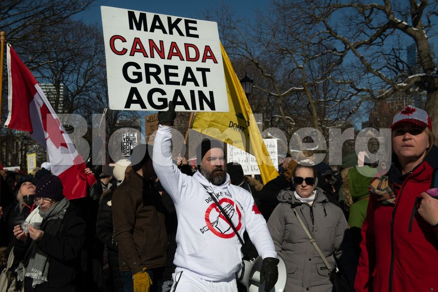 Η καναδική διαμαρτυρία, η οποία επεκτάθηκε σε πόλεις σε ολόκληρη τη χώρα αυτό το Σαββατοκύριακο, υποστηρίχθηκε από το Fox News και από τον podcaster Joe Rogan, τον δισεκατομμυριούχο της Tesla Inc. Elon Musk και τον πρώην πρόεδρο των ΗΠΑ Ντόναλντ Τραμπ.