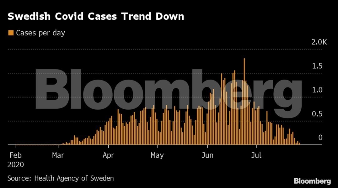 Καθώς άλλες χώρες έρχονται αντιμέτωπες με το ξέσπασμα νέων εστιών του ιού, τα τελευταία στοιχεία της Σουηδίας για τον Covid-19 υποδεικνύουν ότι η χώρα με την αμφισβητούμενη πολιτική που ακολούθησε θέτει με ταχύτερο ρυθμό τον ιό υπό έλεγχο.