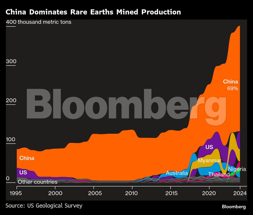 Ως απάντηση στους δασμούς που επέβαλε η Ουάσιγκτον, το Πεκίνο πρόσθεσε πρόσφατα επτά σπάνιες γαίες στη λίστα των ελεγχόμενων εξαγωγών του. Αν και αυτά τα μέταλλα απαντώνται σχετικά συχνά στον φλοιό της Γης, είναι σπάνιο να βρεθούν σε υψηλές συγκεντρώσεις και απαιτούν πολύπλοκες διαδικασίες διαχωρισμού. Η Κίνα διατηρεί τον έλεγχο σχεδόν όλης της παγκόσμιας δυναμικότητας επεξεργασίας, την ώρα που οι ΗΠΑ διαθέτουν ελάχιστες τέτοιες υποδομές, σύμφωνα με την Project Blue.
