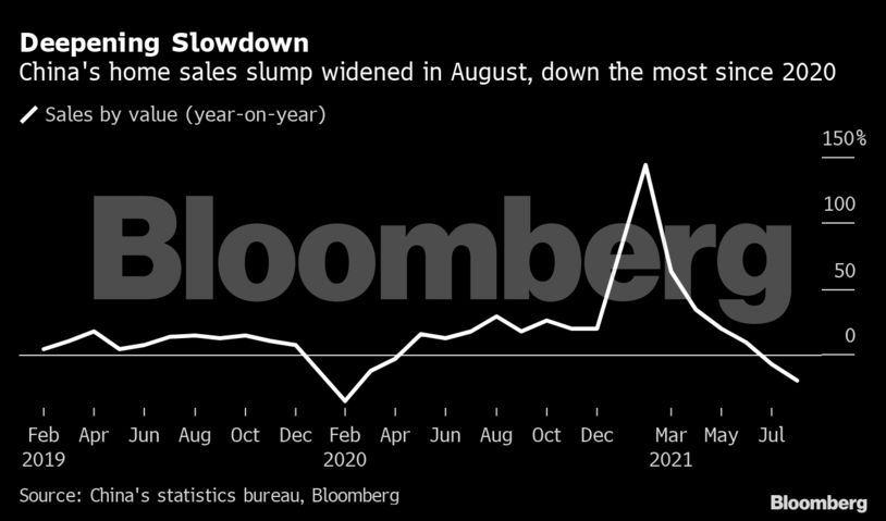 Οι πωλήσεις κατοικιών κατά αξία υποχώρησαν κατά 20% τον Αύγουστο σε σχέση με πέρυσι , η μεγαλύτερη πτώση από τότε που η εμφάνιση του κορωνοϊού έκλεισε τμήματα της οικονομίας στις αρχές του περασμένου έτους, σύμφωνα με υπολογισμούς του Bloomberg που βασίζονται σε στοιχεία της Εθνικής Στατιστικής Υπηρεσίας που δημοσιεύθηκαν την Τετάρτη.
