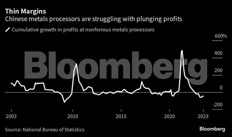 Οι τιμές των μεταλλευμάτων έχουν καταγράψει μείωση από τα υψηλά Ιανουαρίου, δεδομένης της επιβράδυνσης της οικονομίας. Η μείωση της κερδοφορίας των μεταλλουργείων και των κατασκευαστών το α’ εξάμηνο του έτους είναι και η χειρότερη εδώ και πάνω από μία δεκαετία.