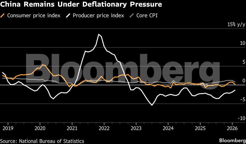 Ο δείκτης τιμών παραγωγού (PPI) υποχώρησε κατά 1,4% σε ετήσια βάση τον Ιανουάριο, καταγράφοντας τη μικρότερη πτώση από τον Ιούλιο του 2024. Η βελτίωση ήταν μεγαλύτερη από τις εκτιμήσεις και αποδίδεται κυρίως στο παγκόσμιο ράλι των μετάλλων. Την ίδια ώρα, ο πληθωρισμός καταναλωτή επιβραδύνθηκε στο 0,2% από 0,8% τον Δεκέμβριο, λόγω υψηλής βάσης σύγκρισης.