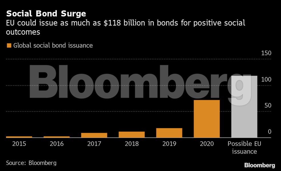 Επί του παρόντος μόλις το 2% περίπου της αγοράς των ομολόγων της Ευρωζώνης αντιπροσωπεύουν «κοινωνικές» εκδόσεις κι ενώ η πανδημία έχει μετατρέψει τα κοινωνικά ομόλογα στο ταχύτερα αναπτυσσόμενο κομμάτι της βιώσιμης χρηματοδότησης. Η Ευρώπη θα μπορούσε να πουλήσει τίτλους αξίας έως 10 δισ. ευρώ το μήνα, σύμφωνα με την Commerzbank και να αντλήσει έως 100 δισ. ευρώ μέχρι το επόμενο έτος.