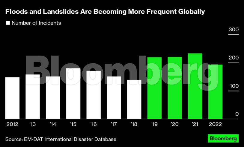 Οι παγκόσμιες ζημιές είναι δύσκολο να υπολογιστούν επειδή δεν διατηρούν όλες οι χώρες ακριβή αρχεία, αλλά οι πλημμύρες έχουν αφήσει περισσότερους από 17.000 νεκρούς ή αγνοούμενους το 2023. Κατά μέσο όρο, σημειώθηκαν 216 πλημμύρες ή κατολισθήσεις σε όλο τον κόσμο ετησίως από το 2019 έως το 2022, σε σύγκριση με 160 τα προηγούμενα τέσσερα χρόνια.
