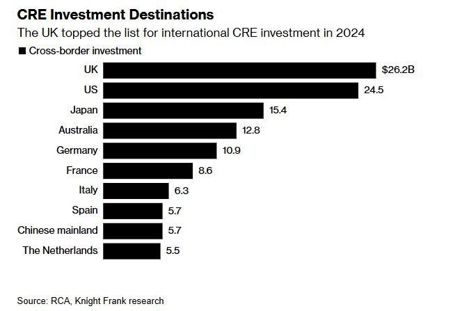 Το Ηνωμένο Βασίλειο βρίσκεται στην κορυφή της λίστας για διεθνείς επενδύσεις CRE το 2024