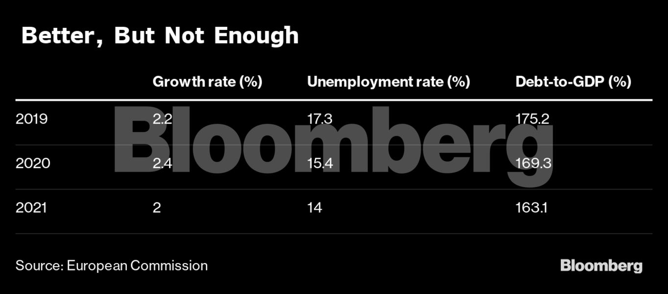 “Οι συσσωρευμένες ανισορροπίες θα απαιτήσουν περαιτέρω μεταρρυθμιστικές προσπάθειες μέσα στα επόμενα χρόνια”, ανέφερε η Επιτροπή στην εκτίμησή της για τη χώρα. Αφού έχασε περίπου το 25% της οικονομικής της παραγωγής κατά τη διάρκεια της δεκαετούς κρίσης χρέους, η Ελλάδα πρέπει να επιταχύνει τις μεταρρυθμιστικές της προσπάθειες προκειμένου να επανέλθει σταδιακά στα προ της κρίσης επίπεδα.