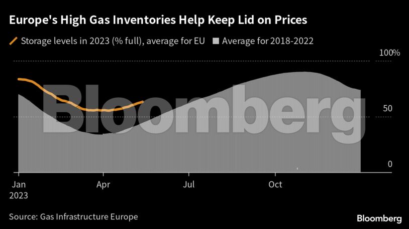 Τα αποθέματα της περιοχής είναι ασυνήθιστα υψηλά – στο 63% πληρότητα – μετά από ένα μήνα καθαρών εισδοχών και εισροής υγροποιημένου φυσικού αερίου.
