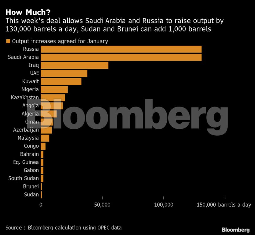 Μετά από τη διαφορετικότητα των απόψεων της Σ. Αραβίας και των ΗΑΕ, το καρτέλ δεν μπορούσε να συμφωνήσει σε κάτι που περίμεναν οι περισσότεροι επενδυτές: μία τρίμηνη καθυστέρηση στην αύξηση παραγωγής πετρελαίου τον Ιανουάριο. Αντιθέτως, οι υπουργοί αποφάσισαν στην αύξηση παραγωγής κατά 500.000 βαρέλια/ημέρα αρχής γενομένης τον Ιανουάριο, με μηνιαίες συναντήσεις για την περαιτέρω αυξομείωσή της.