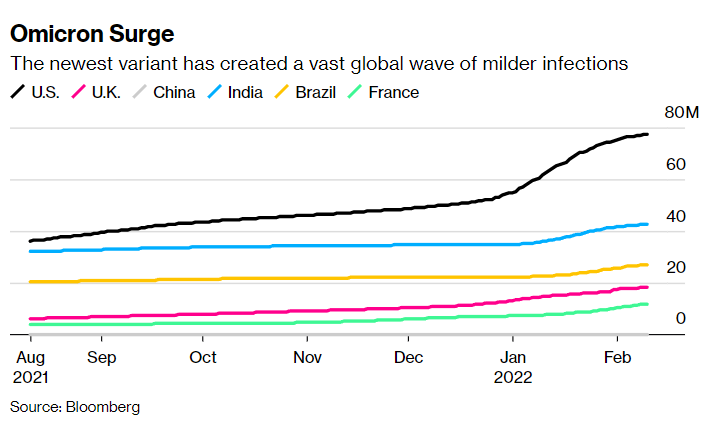Σύμφωνα στοιχεία του ΠΟΥ με τον τρέχοντα ρυθμό μόλυνσης, τα μοντέλα δείχνουν ότι παραπάνω από το μισό του πληθυσμού της Ευρώπης θα έχει προσβληθεί από την Όμικρον μέχρι τα μέσα Μαρτίου. «Όσο αρνούμαστε να εμβολιαστούμε, θα συνεχίσουμε να βλέπουμε νέα κύματα. Θα συνεχίσουμε να έχουμε αρκετά επικίνδυνες παραλλαγές» υποστηρίζουν οι ειδικοί.