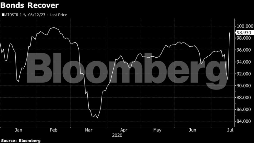 Στο μεταξύ, τα ομόλογα λήξης 2023 της Autostrade ενισχύθηκε σε επίπεδα ρεκόρ σήμερα Τετάρτη. Το ομόλογο ενισχύθηκε κατά 7,5 σεντς στα 98 σεντς, που είναι το υψηλόυερο επίπεδο από τον περασμένο Φεβρουάριο, σύμφωνα με τα στοιχεία του Bloomberg.