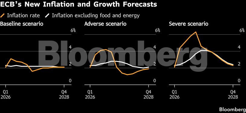 Η εικόνα των τιμών έχει ήδη επιδεινωθεί αισθητά. Ενώ πριν από λίγες εβδομάδες υπήρχε κίνδυνος υποχώρησης του πληθωρισμού κάτω από το 2%, πλέον εκτιμάται ότι θα υπερβεί σημαντικά τον στόχο τους επόμενους μήνες. Το βασικό σενάριο της ΕΚΤ προβλέπει πληθωρισμό 2,6% για το 2026, ενώ σε ακραίο σενάριο με παρατεταμένες διαταραχές στην ενέργεια, θα μπορούσε να φτάσει ακόμη και το 6,3%.