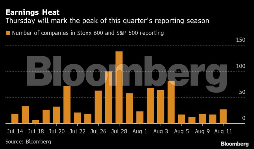 Στην Ευρώπη, ο αριθμός των εταιρειών είναι μεγαλύτερος. Πάνω από 80 εταιρείες εισηγμένες στον Stoxx 600 συνολικής αποτίμησης $2,6 τρισ. αναμένεται να δημοσιεύσουν τα αποτελέσματά τους.