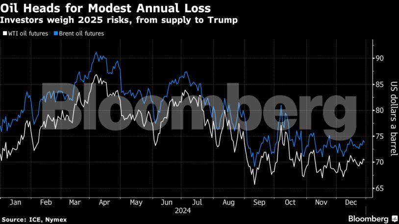 Το πετρέλαιο παραμένει σταθερό, καθώς οι επενδυτές επικεντρώνονται στους κινδύνους του 2025, από την άφθονη προσφορά έως την απρόβλεπτη συμπεριφορά της επερχόμενης κυβέρνησης Τραμπ.