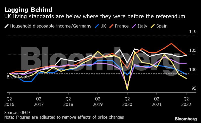 Η οικονομική ανάπτυξη είναι πολύ μεγαλύτερη στην Ιταλία και τη Γερμανία, ενώ σύμφωνα με στοιχεία του ΟΟΣΑ όσον αφορά τις μεγαλύτερες οικονομίες της Ε.Ε., μόνο η Ισπανία έχει χαμηλότερα επίπεδα διαβίωσης από τη Βρετανία.