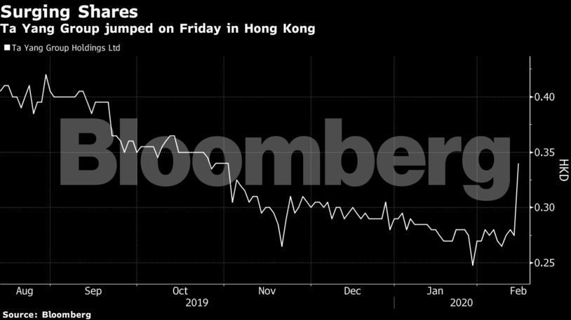 Πρόκειται για την Ta Yang Group Holdings με έδρα το Χονγκ Κονγκ που είδε τη μετοχή της να κάνει άλμα 129% σήμερα στο χρηματιστήριο αγγίζοντας τα 0,63 δολ. Χονγκ Κονγκ. Ήταν η υψηλότερη τιμή από τον Νοέμβριο του 2018. Στο κλείσιμο σημείωνε άνοδο 24%. Σχεδόν 72 εκατ. μετοχές άλλαξαν χέρια νούμερο που είναι κατά 317 φορές μεγαλύτερο από τον τριμηνιαίο ημερήσιο μέσο όρο.