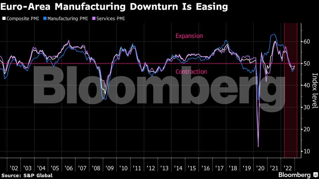 Η ύφεση της μεταποιητικής βιομηχανίας στη ζώνη του ευρώ υποχωρεί καθώς οι κρίσεις της εφοδιαστικής αλυσίδας μειώνονται και ο πληθωρισμός επιβραδύνεται, σηματοδοτώντας ότι η οικονομική ύφεση στις χώρες της Ζώνης του Ευρώ θα είναι λιγότερο απότομη από ό,τι αναμενόταν.