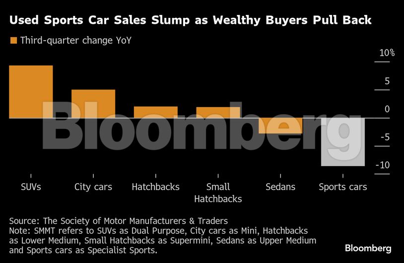 Η αγορά μεταχειρισμένων αυτοκινήτων έχει επίσης υποστεί πιέσεις. Το τμήμα που περιλαμβάνει εμπόρους που εμπορεύονται σπάνιες, μεταχειρισμένες Porsche και Ferrari σημείωσε πτώση 8,6% το γ’ τρίμηνο του 2025 σε σχέση με το προηγούμενο έτος, ακόμη και όταν οι συνολικές πωλήσεις μεταχειρισμένων αυτοκινήτων σημείωσαν το καλύτερο τρίμηνο από το 2021, σύμφωνα με έκθεση της Society of Motor Manufacturers and Traders.
