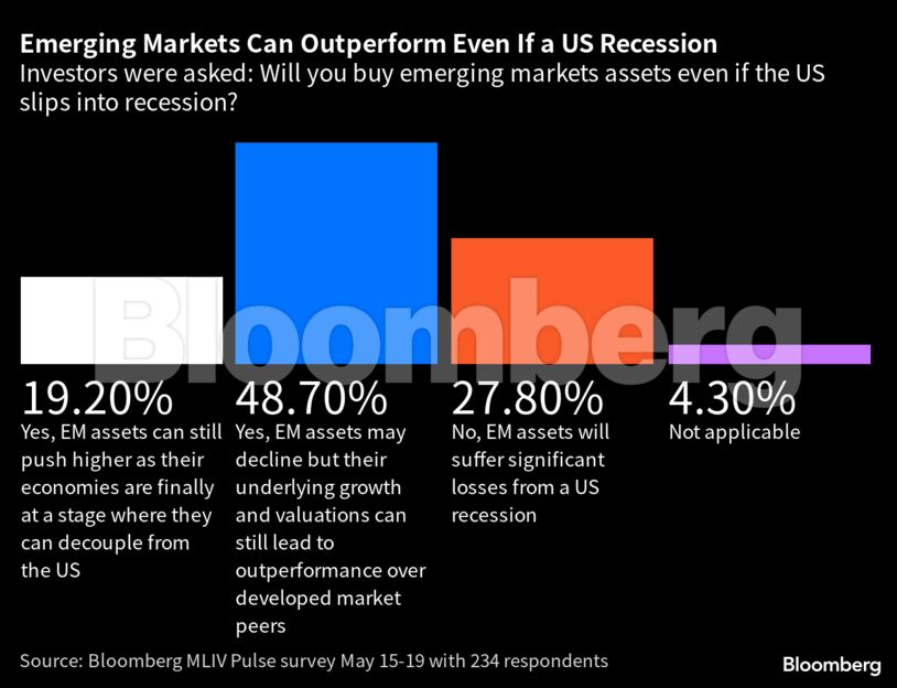 Περίπου το 61% των 234 ερωτηθέντων επενδυτών, αναλυτών και διαχειριστών κεφαλαίων ανέφεραν πως πρόκειται να αυξήσουν την έκθεσή τους στις αγορές αυτές το επόμενο 12μηνο παρά τις ανησυχίες για πιθανή κρίση στην οικονομία των ΗΠΑ. Σύμφωνα με τους ίδιους, οι επενδύσεις αυτές θα προσφέρουν προστασία σε περίπτωση δημιουργίας ύφεσης.
