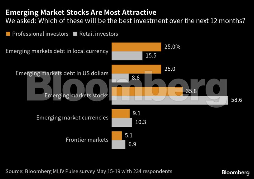 Οι ελκυστικές αποδόσεις αυτές οφείλονται κυρίως στις μετοχές των αγορών αυτών. Το 41% των ερωτηθέντων της έρευνας της MLIV Pulse υποστήριξαν πως οι μετοχές των αναπτυσσόμενων αγορών αποτελούν την ελκυστικότερη επενδυτική επιλογή για τους προσεχείς 12 μήνες.
