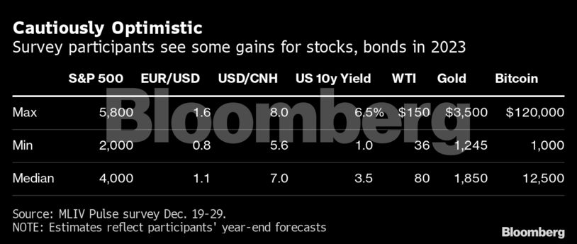 Σύμφωνα, επίσης, με τη δημοσκόπηση της MLIV Pulse το 2023 θα αποτελέσει ένα νέο έτος περιορισμένης λήψης ρίσκου εκ μέρους των επενδυτών, με τον S&P 500 να αναμένεται να καταγράψει άνοδο της τάξης του 4%.