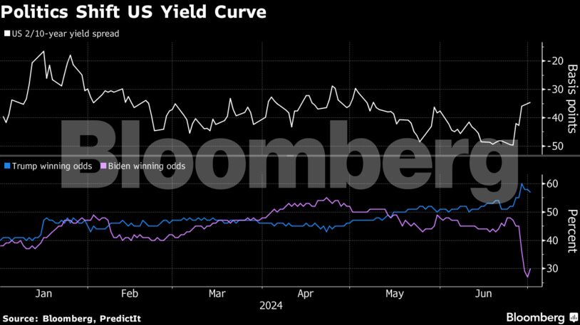 «Υπήρξε μια σαφής σχετική μετατόπιση στις πιθανότητες νίκης του Προέδρου Τραμπ έναντι του Προέδρου Μπάιντεν» μετά το debate, έγραψαν στο σημείωμα οι στρατηγικοί αναλυτές της Morgan Stanley, μεταξύ των οποίων οι Μάθιου Χόρνμπαχ και Γκουνιτ Ντίνγκρα. «Η απότομη μετατόπιση των πιθανοτήτων υπέρ του προέδρου Τραμπ μπορεί να είναι ένας μοναδικός καταλύτης που καθιστά ελκυστικές τις καμπύλες με απότομη κλίση».