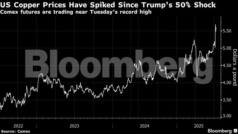 Η έντονη κινητικότητα των τιμών αυτή την εβδομάδα έχει ανεβάσει τα αμερικανικά προθεσμιακά συμβόλαια σε premium περίπου 28% σε σχέση με το Χρηματιστήριο Μετάλλων του Λονδίνου, το οποίο καθορίζει τις παγκόσμιες τιμές. Αυτό υποδηλώνει ότι οι έμποροι δεν είναι πεπεισμένοι ότι ο δασμός του 50% θα επιβληθεί καθολικά. Παρόλα αυτά, ορισμένοι προσπαθούν τώρα να μεταφέρουν φορτία στις ΗΠΑ πριν από την προθεσμία της 1ης Αυγούστου, μεταξύ άλλων μετατοπίζοντας τις παραδόσεις στη Χαβάη και το Πουέρτο Ρίκο για να μειώσουν τους χρόνους αποστολής.