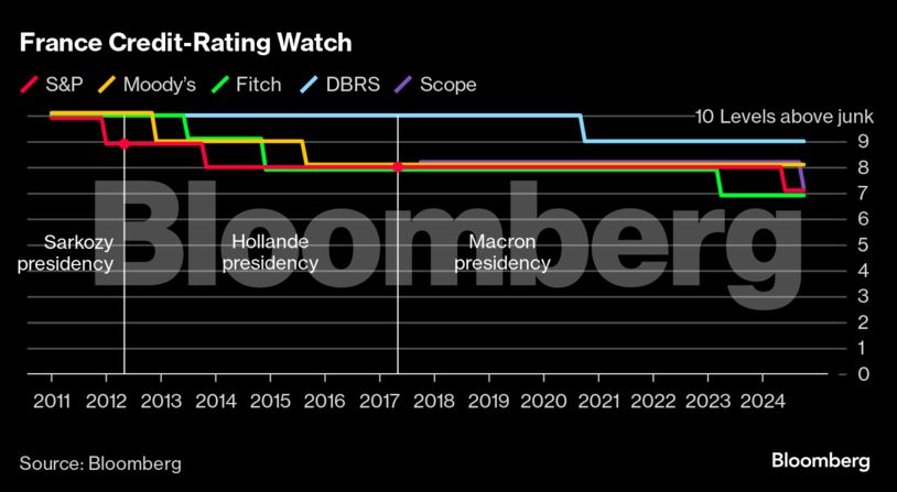 Οι επενδυτές αντέδρασαν πουλώντας γαλλικά περιουσιακά στοιχεία, αυξάνοντας το ασφάλιστρο που πληρώνει η χώρα για το 10ετές χρέος της έναντι της Γερμανίας σε πάνω από 80 μονάδες βάσης, από κάτω από 50 νωρίτερα φέτος. Το ασφάλιστρο αυτό έχει υποχωρήσει στις 71 μονάδες βάσης τις τελευταίες ημέρες, καθώς η προοπτική ταχύτερης μείωσης των επιτοκίων βοηθά τις υπεραποδόσεις των χρεωμένων χωρών όπως η Γαλλία και η Ιταλία.
