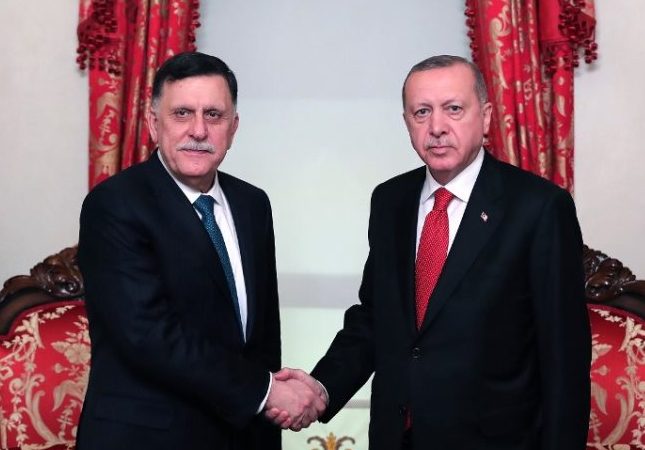 Οι δυνάμεις της έφτασαν στα περίχωρα της κεντρικής παράκτιας πόλης Σύρτη το Σάββατο, και δήλωσαν ότι σκοπεύουν να ανακαταλάβουν και τη βάση Γιουφρα του Χαφτάρ στην κεντρική Λιβύη. Ωστόσο, η πλευρά Σάρατζ (στη φωτό με τον Ερντογάν) έχει πει πως δεσμεύεται από συνομιλίες για κατάπαυση του πυρός που υποστηρίζονται από τα Ηνωμένα Έθνη