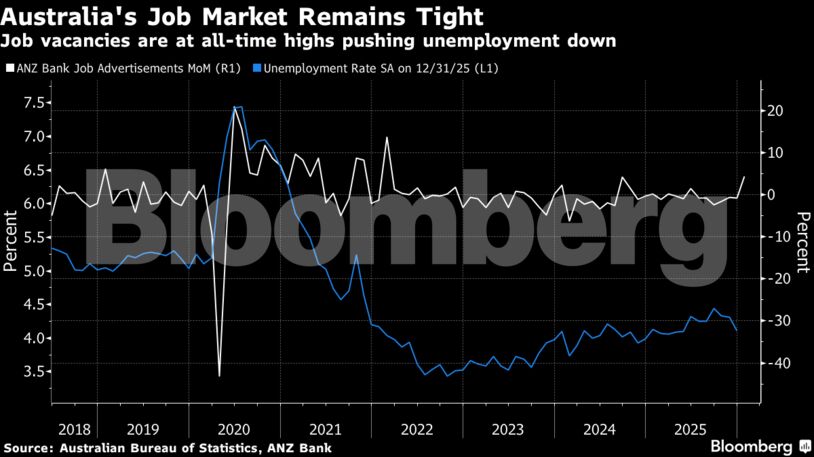 Η οικονομία της Αυστραλίας λειτουργεί κοντά στα όριά της, με την ανεργία σε ιστορικά χαμηλά και τον πληθωρισμό να κινείται εκ νέου πάνω από το ανώτατο όριο του στόχου. Τα τελευταία στοιχεία έδειξαν ότι οι αγγελίες εργασίας κατέγραψαν τη μεγαλύτερη μηνιαία άνοδο από τον Φεβρουάριο του 2022, ενώ ξεχωριστά δεδομένα επιβεβαίωσαν ότι οι τιμές κατοικιών παρέμειναν ισχυρές τον Ιανουάριο.