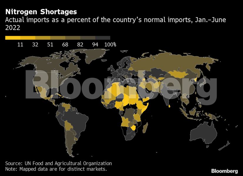 Η κρίση στην αγορά πυροδότησε μια άνοδο στις τιμές το περασμένο καλοκαίρι που οδήγησε σε αποθήκευση αποθεμάτων από όσους ήταν σε θέση να αγοράσουν λιπάσματα, και ενώ το κόστος έχει έκτοτε μειωθεί σημαντικά, παραμένουν πάνω από τα προ πανδημίας επίπεδα. Οι προμήθειες περιορίζονται στις φτωχότερες περιοχές. Η κατάσταση επιδεινώνεται από τις κυρώσεις στον κολοσσό ποτάσας, τη Λευκορωσία, παράλληλα με την απόφαση της Κίνας, ενός μεγάλου παραγωγού αζωτούχων και φωσφορικών λιπασμάτων, να επιβάλει περιορισμούς στις εξαγωγές για την προστασία της εγχώριας προσφοράς, περιορισμοί που οι αναλυτές δεν βλέπουν να αρθούν μέχρι τα μέσα του 2023, το συντομότερο.