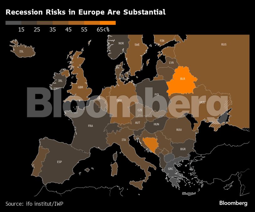 Οι ευρωπαϊκές οικονομίες έλαβαν κακή βαθμολογία σε έρευνα εμπειρογνωμόνων που έδειξε αυξημένους κινδύνους ύφεσης λόγω των γεωπολιτικών συγκρούσεων και του αυξημένου ενεργειακού κόστους. Στη ζώνη του ευρώ, οι πιθανότητες για δύο συνεχόμενα τρίμηνα μειωμένης παραγωγής έως το τέλος του έτους είναι υψηλότερες στη Γερμανία και την Ολλανδία.