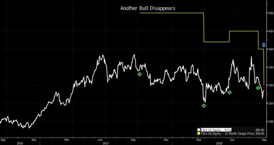 Πάντως η κατάρρευση στη μετοχή της Tesla, ήτοι περίπου 9% για τον Σεπτέμβριο και 30% από τις αρχές Αυγούστου 2018 (και 13% την περασμένη εβδομάδα), αποτελεί μία ευκαιρία για τους επενδυτές που επιθυμούν να αποκτήσουν τη μετοχή σε ελκυστική τιμή, σχολιάζουν σε σημείωμά τους οι αναλυτές της Bernstein.