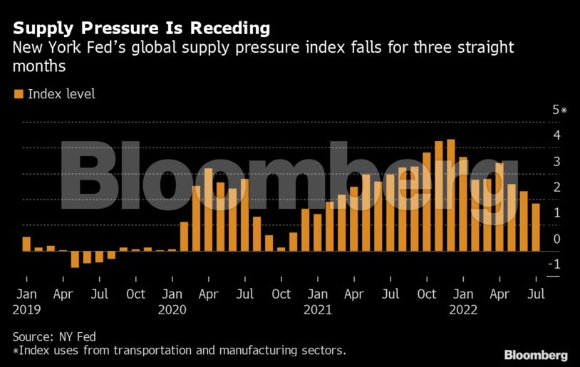 Η χαλάρωση των προβλημάτων στην εφοδιαστική αλυσίδα παίζει επίσης σημαντικό ρόλο. Ο δείκτης της Fed της Νέας Υόρκης που μελετά την πίεση της εφοδιαστικής αλυσίδας αυτής έχει μειωθεί στο χαμηλότερο επίπεδο από τις αρχές του 2021. Πολλές εταιρείες έχουν αρχίσει να παραπονιούνται για υψηλά αποθέματα και γεμάτες αποθήκες.