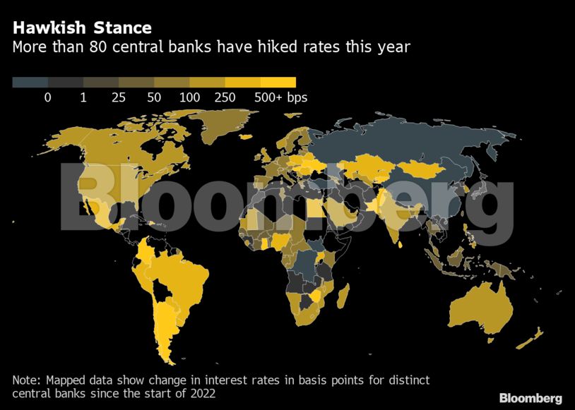 Παρά τα συνεχόμενα προβλήματα και την απειλή δημιουργίας ύφεσης, οι επενδυτές της αγοράς ομολόγων υπολογίζουν πως οι κεντρικές τράπεζες θα συνεχίσουν να ακολουθούν την επιθετική τους νομισματική πολιτική. Οι επενδυτές υπολογίζουν πως μέχρι τον επόμενο Μάρτιο, η Fed θα έχει αυξήσει τα επιτόκιά της στο 3,75%, η ΕΚΤ στο 1,75% και η ΒοΕ στο 4%.