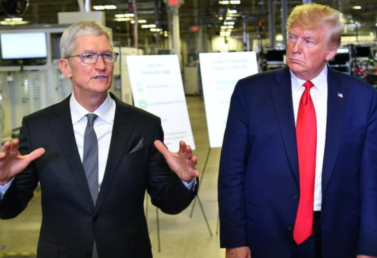 Κατά την πρώτη θητεία του, ο Τραμπ είχε δηλώσει ότι ο Κουκ είναι «εξαιρετικός διευθυντής», σημειώνοντας ότι «με καλεί, ενώ άλλοι δεν το κάνουν». Πέρυσι, ο Κουκ του είχε προσφέρει ως δώρο μια γυάλινη πλάκα με το λογότυπο της Apple πάνω σε βάση από χρυσό 24 καρατίων.