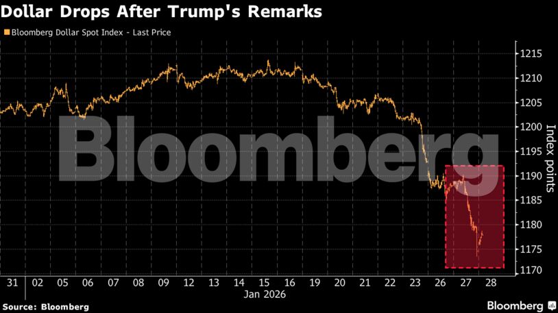 Τα σχόλια του Τραμπ προσέθεσαν καύσιμα στην ήδη μεγαλύτερη πτώση του δολαρίου από την επιβολή των δασμών του πέρυσι, εντείνοντας τους φόβους ότι οι απρόβλεπτες πολιτικές του κινήσεις θα οδηγήσουν τους ξένους επενδυτές να απομακρυνθούν από τις ΗΠΑ. Μετά τα σχόλιά του, η πτώση του δείκτη Bloomberg Dollar Spot επεκτάθηκε, φτάνοντας έως και 1,2%, με το αμερικανικό νόμισμα να εξασθενεί έναντι όλων των μεγάλων νομισμάτων του κόσμου πριν σταθεροποιηθεί κάπως στη συνεδρίαση της Ασίας σήμερα Τετάρτη.Ουσιαστιά ενισχύθηκε ηη λεγόμενη «διαδικασία απομείωσης» του νομίσματος, η οποία ευνοεί επενδύσεις σε μέταλλα και άλλες «ασφαλείς» αξίες.