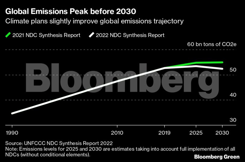 Οι χώρες οι οποίες έχουν προσυπογράψει τη Συμφωνία του Παρισιού αυξάνουν, μεν, την ταχύτητα μετάβασης σε καθαρότερες πηγές ενέργειας, αλλά όχι όσο θεωρείται αναγκαίο. Ακόμα κι αν επιτύχουν στο 100% των στόχων τους μέχρι το 2030, θα υπάρχει πλεόνασμα 16 δισεκατομμυρίων τόνων διοξειδίου που θα διοχετευθεί στην ατμόσφαιρα και το οποίο θα οδηγήσει αναπόφευκτα σε αύξηση της θερμοκρασίας άνω των 2 βαθμών Κελσίου.