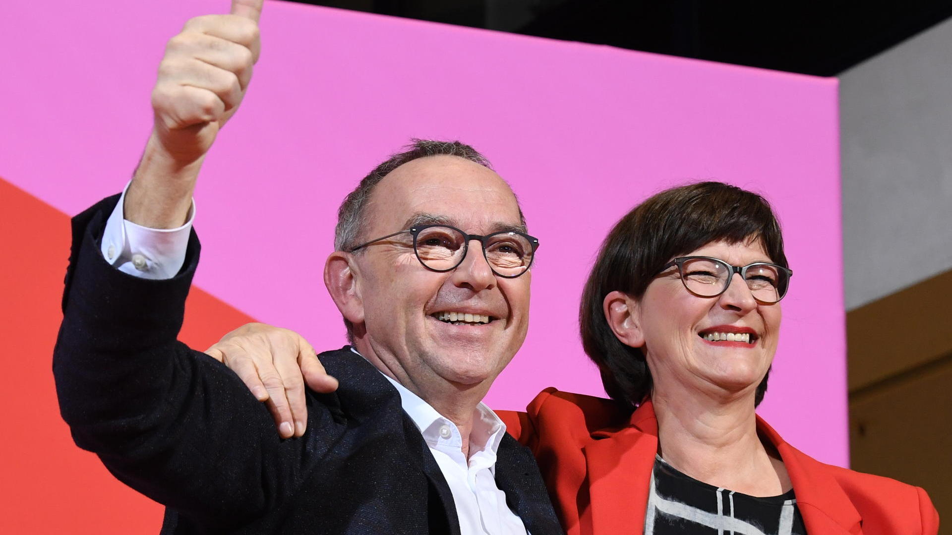 Τα μέλη του SPD εξέλεξαν στην ηγεσία δυο στελέχη με κριτική στάση προς την κυβέρνηση, τον 76χρονο Νόρμπερτ Βάλτερ- Μπόργιανς και την 58χρονη βουλευτίνα Σάσκια Έσκεν, οδηγώντας τον άλλο υποψήφιο και πιστό σύμμαχο της Μέρκελ, τον υπουργό Οικονομικών Όλαφ Σολτς σε μια οδυνηρή εκλογική αποτυχία.