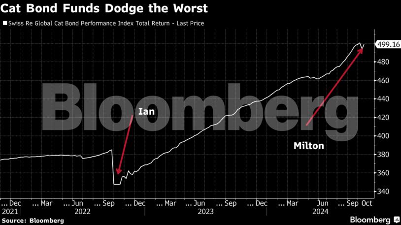 Πριν χτυπήσει ο Μίλτον νότια της Τάμπα στις 9 Οκτωβρίου ως τυφώνας κατηγορίας 3, η αγορά των ομολόγων καταστροφών είχε προετοιμαστεί για απώλειες που έφτασαν το 15%, επισκιάζοντας εκείνες που προκλήθηκαν από τον τυφώνα Ίαν δύο χρόνια νωρίτερα. Στην πραγματικότητα, οι απώλειες από τον Μίλτον θα είναι πιο κοντά στο 1%, ενδεχομένως και λιγότερο.